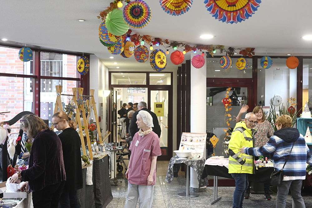 Das St. Peter-Team ist dabei auch selbst zusammen mit den Bewohnern kreativ geworden und hat Marmelade hergestellt, die ebenfalls reißenden Absatz findet bei den Marktbesuchern. „Wir freuen uns besonders über die Unterstützung der Lebenshilfe, die mit zwei Ständen vertreten ist“, betont Nikola Hornen-Boermann. „Und auch zahlreiche Spenden haben uns geholfen, ein solch breites Programm auf die Beine zu stellen.“ Nicht zu vergessen die treuen Ehrenamtler, die dazu beitragen, dass dieser Martins-Markt 2023 noch lange positiv nachwirken wird.